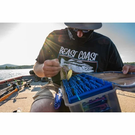 Au cœur du Blade Krate se trouvent les 21 chemises en plastique infusées de Zerust et anti-corrosion conçues pour accrocher chacune 2 leurres via des clips intégrés. Le Blade Krate contient 42 leurres dans un encombrement compact qui s’adapte aux sacs de pêche standard et aux compartiments de bateau. La conception simple et ergonomique du Blade Krate permet un ajustement pour créer jusqu’à 3 compartiments de stockage en vrac lorsqu’une section de dossiers est retirée pour d’autres options de stockage. La fonctionnalité ciblée du Blade Krate réorganise commodément les priorités du pêcheur : plus de temps à pêcher et moins de tracas avec un fouillis d’hameçons et d’appâts.