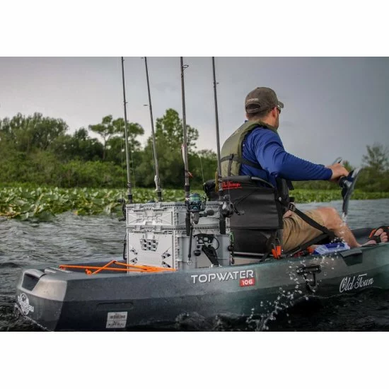 Conçu pour s’adapter sur le pont arrière de la plupart des canoës de pêche, le Flambeau Kayak Tackle Storage Premium renvoie une simple caisse à l’âge de pierre. La caisse Premium est basée sur la caisse de rangement Flambeau Kayak Tackle pour fournir une solution de pêche pratique et adaptée aux canoës, plus sûre et mieux équipée pour répondre aux besoins. Plusieurs anneaux de montage et un couvercle ajusté avec stockage en vrac intégré et loquets à pression surdimensionnés offrent une stabilité même pendant un tableau à feuilles mobiles et permettent un accès rapide à l’équipement. La construction robuste en PEHD du Kayak Tackle Storage Premium permet un réglage facile ; surfaces planes pour le montage d’accessoires universels, porte-drapeau et œillets d’arrimage moulés, 2 porte-cannes intégrés et poignées intégrées. La surface du couvercle est conçue pour fonctionner comme une table et s’adapte au placement de la boîte à pêche.