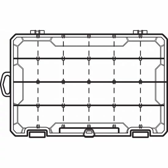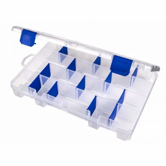 Conception transparente pour une visualisation facile de ce qu’il y a à l’intérieur. dix-huit compartiments à leurres avec quinze chicanes Zerust en vrac.