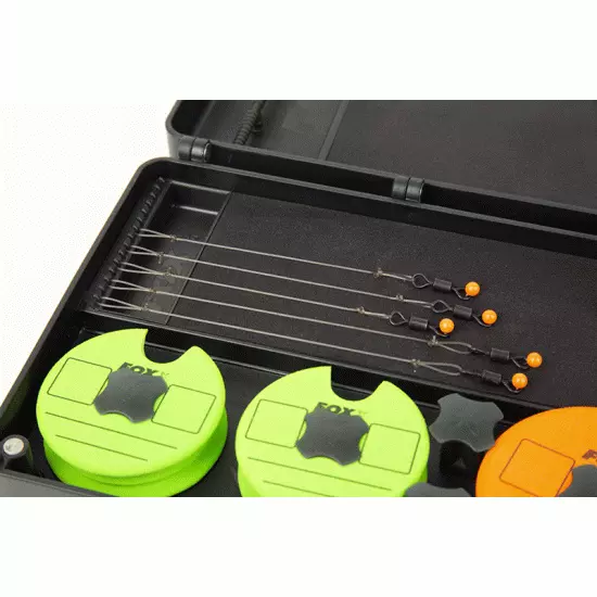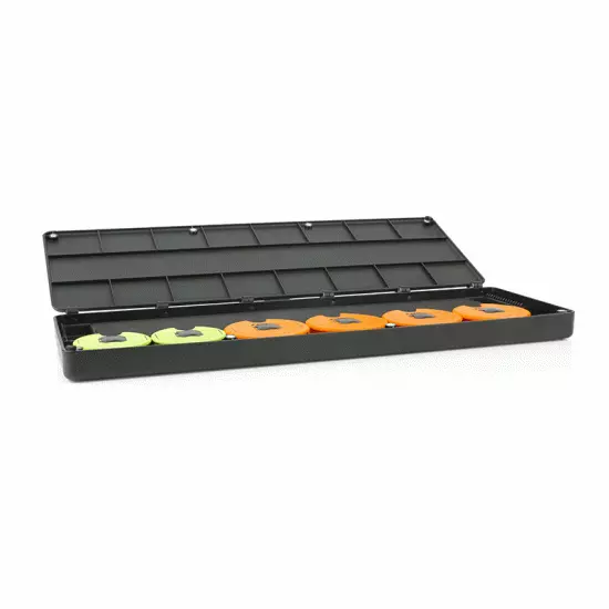 Onderdeel van een nieuw en innovatief, uitwisselbaar rig opslag systeem Uitgerust met 1 large ‘double-ended’ rig board en 1 large Magnetic Chod Disc en ‘boom’ storage board Geleverd met 2 Short Chod Discs en 4 Standaard Chod Discs Op de meegeleverde Discs kunnen haakmodel, haakgrootte en trekkracht van de rig worden genoteerd Inclusief 6 magnetische disc insert die in een Chod Disc worden geplaatst om de disc in de Rig Box te fixeren Meegeleverde Chod Discs kunnen worden vervangen dor de Edges Ready Tied Chod Rig discs Geprofileerde hookbars zodat de rigs niet kunnen verschuiven Hoogwaardig EVA foam voor stevig vastzetten van de pins De ‘boom’ storage is voorzien van kleine, gegoten haakjes om de lus of wartel van de ‘boom’ in te bevestigen – het andere uiteinde wordt gefixeerd met een pin Magnetische scharnieren zodat de twee boards afzonderlijk kunnen worden gebruikt Compatible met de F-Box Magnetic Large Rig Box Lids Magneten verzekeren een goede, stevige sluiting Gegoten liniaal voor nauwkeurig maken van rigs Inclusief 60 pins.